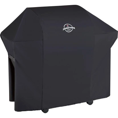 Als Material kommt Polyester zum Einsatz. Der strapazierfähige Stoff zeichnet sich durch seine wasserabweisenden und wetterbeständigen Eigenschaften aus. Zugleich überzeugt er durch seine UV-Beständigkeit und eine unkomplizierte Reinigung durch abwaschen. Dank der seitlichen Klettverschlüsse lässt sich die Hülle fest fixieren, sodass sie auch bei Windböen an Ort und Stelle bleibt. Solltest du die Abdeckung gerade nicht einsetzen, kannst du sie flach zusammenlegen. Die Jamestown Grill-Schutzhülle sorgt für eine verlängerte Lebensdauer deines Grills und erhält die schöne Optik.