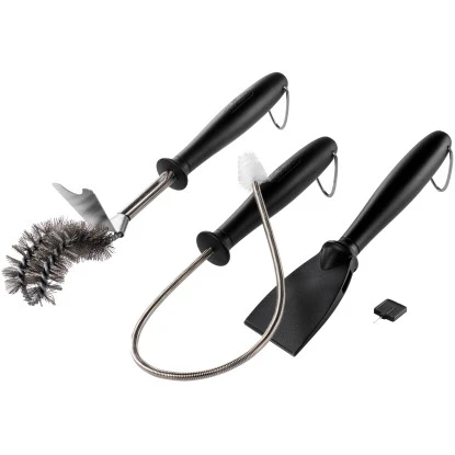 Das 3-teilige Napoleon Grillkammer-Reinigungsset besteht aus einer flexiblen Brennerrohr-Reinigungsbürste, einem Schaber und einer Spezial-Bürste.