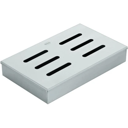 Die Rösle Räucherbox ist eine zweiteilige Edelstahlbox aus Räucherschale und Deckel, fasst bis zu 750 ml und verleiht den Lebensmitteln einen aromatischen Rauchgeschmack. Dazu wird eine handvoll der handelsüblichen Holzchips (erhältlich in unterschiedlichen Geschmacksrichtungen) in die Räucherbox gegeben. Danach nur noch mit dem Deckel verschließen und ab auf die heißen Kohlen oder auf den Gasbrenner. Je länger die Box auf dem Grill verbleibt, desto intensiver ist die Rauchnote.