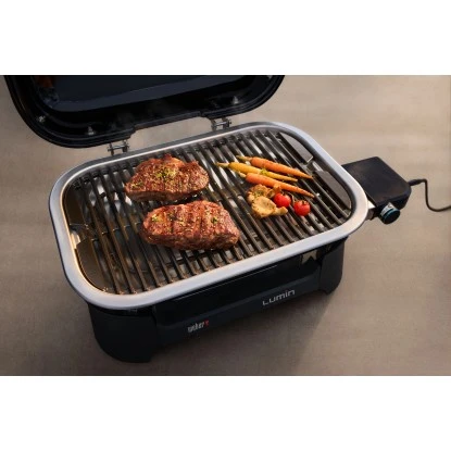 Dieser multifunktionale Elektrogrill erreicht Temperaturen von über 315 °C für ausgezeichnetes Anbraten, während die Rauchzufuhr das gewünschte Grillaroma noch weiter verstärkt. Ideal zum Anbraten, Räuchern, Dämpfen oder Kochen mit verschiedenen Gareinstellungen, außerdem hält er zudem die Speisen warm, sodass sich alle jederzeit selbst bedienen können Auch das Grillen von tiefgekühltem Grillgut ist möglich, indem es während des Vorheizens aufgetaut wird. Der neue Lumin Elektrogrill Weber ist modern, praktisch und so konzipiert, dass er alle Ihre Wünsche nach einem guten Geschmack erfüllt und sich zugleich gut in Ihren Außenbereich einfügt.